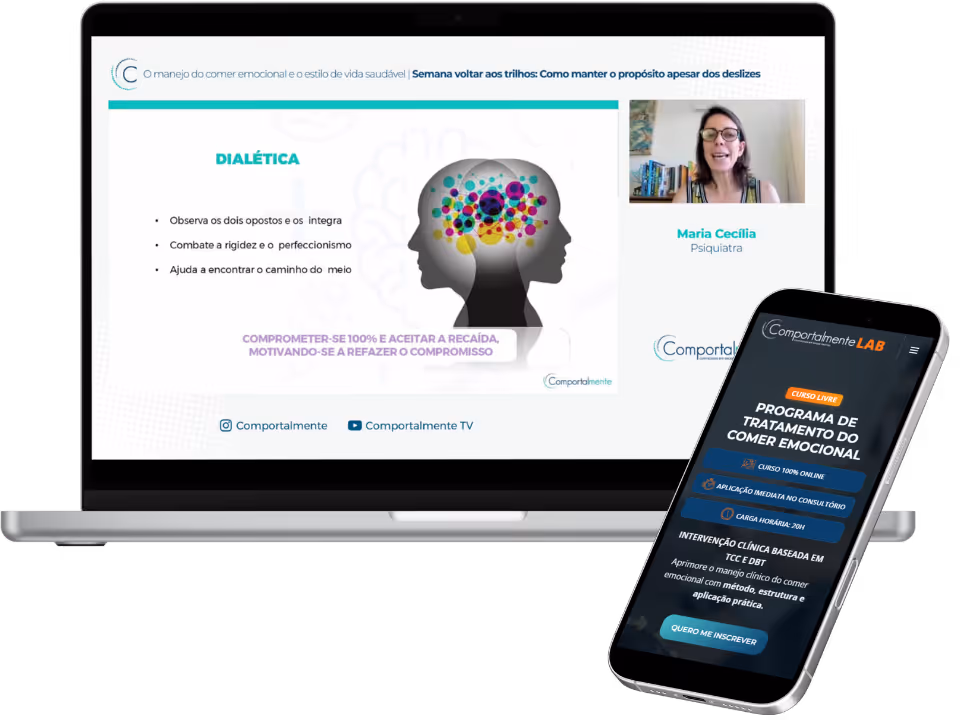 O Programa de Tratamento do Comer Emocional é um curso teórico-prático, 100% online e assíncrono, composto por aulas gravadas, demonstrações objetivas de técnicas, exemplos clínicos e materiais de apoio.